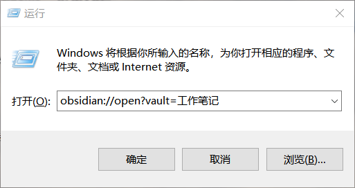 vault只需要有名字即可,不需要给出完整路径。Obsidian 将打开过的笔记库在系统配置中有记录。
